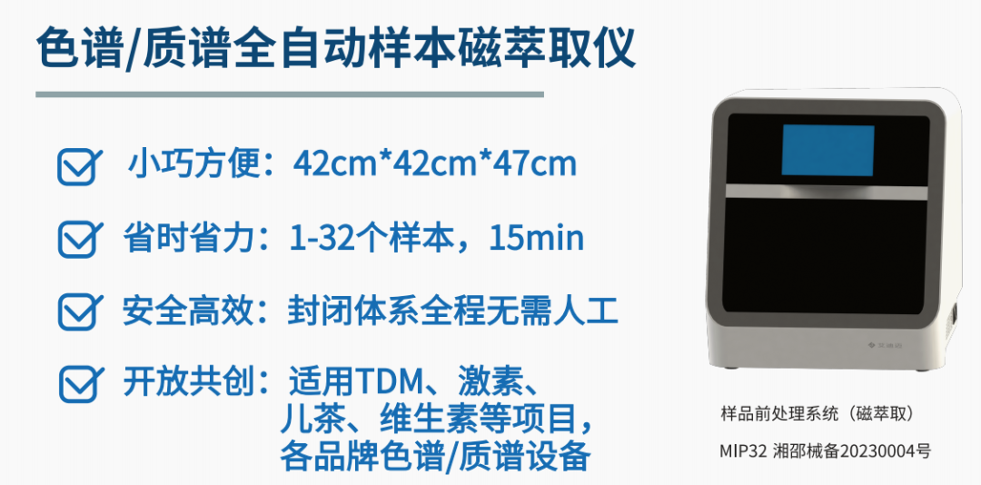 ![]() 2024年1月14日,由中国药理学会治疗药物监测研究专业委员会、大连医科大学附属第二医院、苏州大学附属第一医院主办的“第十三届治疗药物监测学术年会”顺利闭幕。 开幕式主会场由北医三院赵荣生教授与中日友好医院陈文倩教授主持,大连医科大学附属第二医院王立明教授、苏州大学附属第一人民医院缪丽燕教授、大连市卫健委赵作伟主任、辽宁省药学会刘彤秘书长、中国药理学会杜冠华教授出席开幕式并致辞。 本届大会以“新理念、新技术和新方法”为主题,分设抗肿瘤、神经与精神药物、抗感染与定量药理学等多个分论坛,邀请多位国内知名专家作专题学术报告,共襄学术盛宴。 艾迪迈携新方案亮相本次大会 ![]() 精准诊疗是我国医疗未来的方向发展,个体化用药可以提高用药安全性及有效性,TDM已成为临床实现给药方案个性化的核心支撑点。 针对国内目前各级医院TDM项目发展不平衡的现状,艾迪迈携3套TDM精准检测方案,亮相本次会议,以满足不同层级医院的不同需求。 1. 被广泛认可的明星产品方案 ![]() 2. 引领未来趋势的磁萃取方案 据统计,色谱/质谱检测手工法前处理占整个过程60%以上的时间,32%的误差来自于样本前处理环节!并且存在长期有机溶剂的接触风险。尤其是部分检测项目的氮浓缩操作,需要加热和用到易燃易爆易挥发试剂,不仅带来检测误差,还会对环境与人体健康带来危害,尤其对直接操作人员更加明显。因此色谱/质谱前处理的标准化、自动化势在必行。 ![]() 艾迪迈独家创新的ASP单分散磁球,成为行业的标杆。配合自身开发的自动化辅助设备,可实现TDM、维生素、激素、儿茶酚胺等领域的色谱/质谱样本自动化前处理。以TDM项目为例:经自动化磁萃取仪处理后,在高效液相色谱仪上进行检测,其回收率范围在89-108%之间,批间精密度在3.5-4.6%之间,完全满足临床需求。 ![]() 此外,材料和设备的全国产化,使其具备极佳的性价比,有助于色谱/质谱样本前处理彻底告别全手工前处理时代,同时规避人为操作误差,缩小检测CV值,同时保护操作老师免受有机溶剂损伤。让质谱/色谱技术更好的为临床检验服务,提升检测价值。 ![]() 会议期间专家学者络绎不绝,大家纷纷表示: 1.全自动的TDM精准检测方案充分满足了二级医院对高准确度、高自动化和高性价比的需求,有助于TDM项目的广泛开展,服务更多的患者; 2.自动化磁萃取方案能够免除复杂的人工前处理过程,实现样本提取、纯化、富集一体化,同时全封闭的工作环境保护了操作者的身体健康,可以加速色谱/质谱技术在临床的推广应用。 ↓↓↓现场图片(可左右滑动)↓↓↓ 关于艾迪迈 临床色谱/质谱检测—高通量全自动整体解决方案 ![]() 艾迪迈以原研技术驱动产品创新为战略核心,拥有智能化核心材料制备技术及自动化辅助设备开发能力,是国内领先的专用型色谱、质谱自动化检测领域的材料、设备及检测的全流程解决方案供货商。公司坚持以临床需求为主导,以高质量、高性价比、自动化为标准,构筑覆盖自动化色谱/质谱样本前处理方案,维生素检测、治疗药物监测等多项分析诊断整体解决方案,得到了国内外多家医疗检验机构及工业客户的广泛认可。公司在多地设立有技术应用与服务中心及GMP认证的生产基地,并且与中国科学院、威高集团、日本岛津、纳微生命等知名院校和企业建立长期合作。是国家高新技术企业、姑苏领军企业及中国医疗器械行业协会智慧及移动医疗分会理事单位。 |